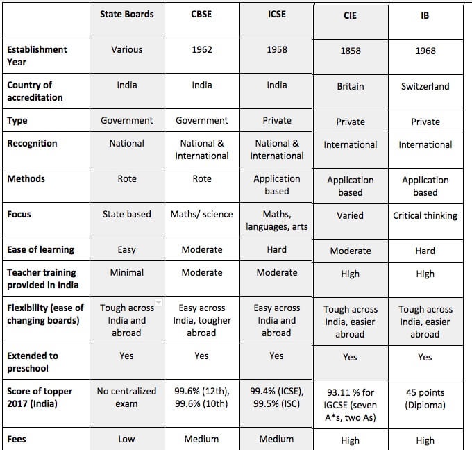 For instance, many students end up choosing CBSE or ICSE board when they are more comfortable in a content-based pedagogy and a more articulated learning path. On the other hand, people who are more comfortable with a research-based pedagogy prefer IB Diploma or A levels. In India, as far as IB and A levels are concerned, the scores provided cannot usually be normalised and compared against CBSE, ICSE and state boards yet.